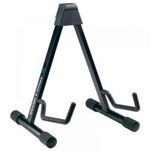 Een gitaarstandaard zorgt ervoor dat je je gitaar altijd voor het grijpen hebt. Ze zijn er in vele maten en soorten. Let altijd op dat er nergens scherpe randje aan zitten.