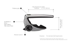 Als je een nylon-snarige gitaar hebt, dan heb je een klassieke, platte capo nodig. De beste capo is van het merk Shubb. Vooral voor kinderen is deze capo erg fijn in het gebruik omdat je er weinig kracht voor nodig hebt om hem te plaatsen.